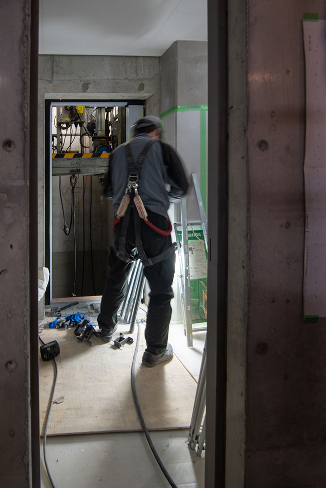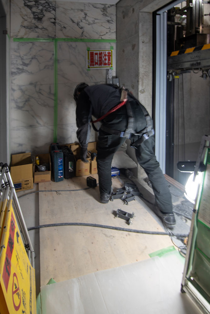 1階ではエレベーターの設置作業が行われています。