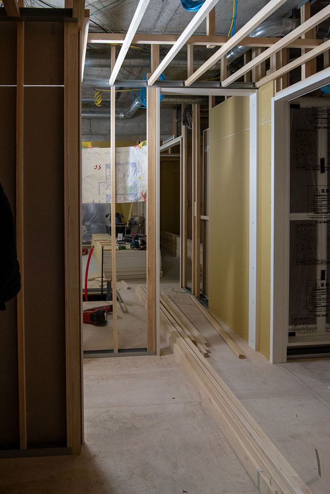 5~7階では造作工事中でした。写真は7階のお部屋です。