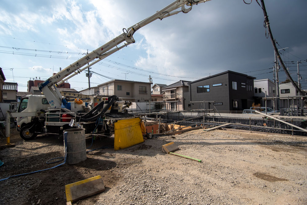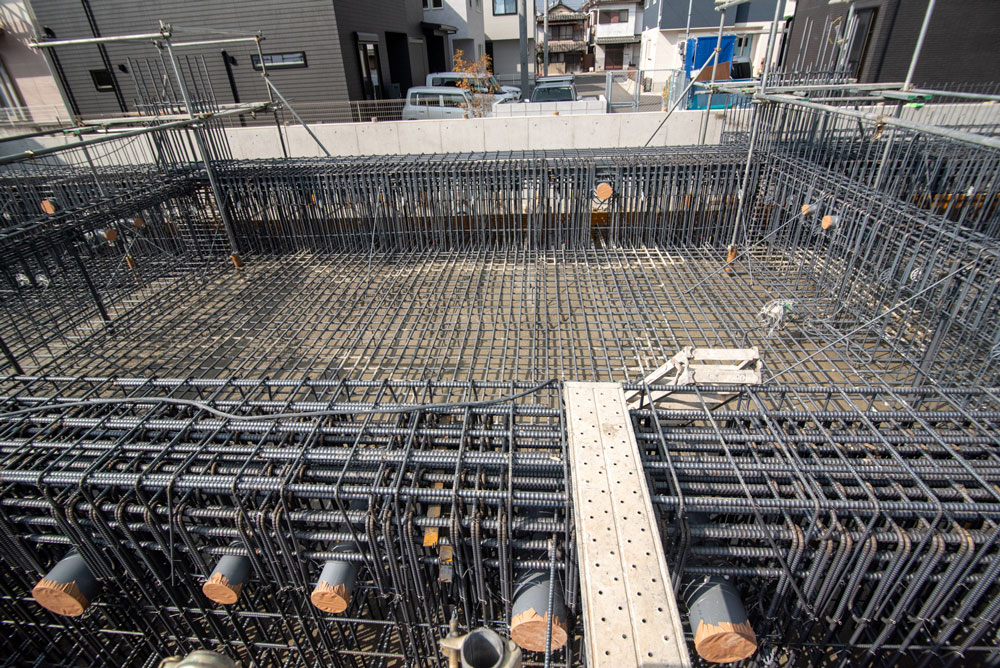 2026.02.07 工事レポート ONLY ONE 三田 工事レポ 本日はONLY ONE 三田の工事レポート第2回です。どうぞよろしくお願いいたします。 2026年2月6日 ONLY ONE 三田では現在基礎工事が行われています。この日はコンクリートが搬入されていました。 ぎっしりと詰まった基礎の配筋。とても頑丈そうです。 基礎の底盤部分に生コンクリートが流し込まれています。 ONLY ONE 三田は鉄筋コンクリート造8階建て。1階に貸店舗(貸事務所)3戸2~8階は、1LDKタイプの住居42戸を予定しています。