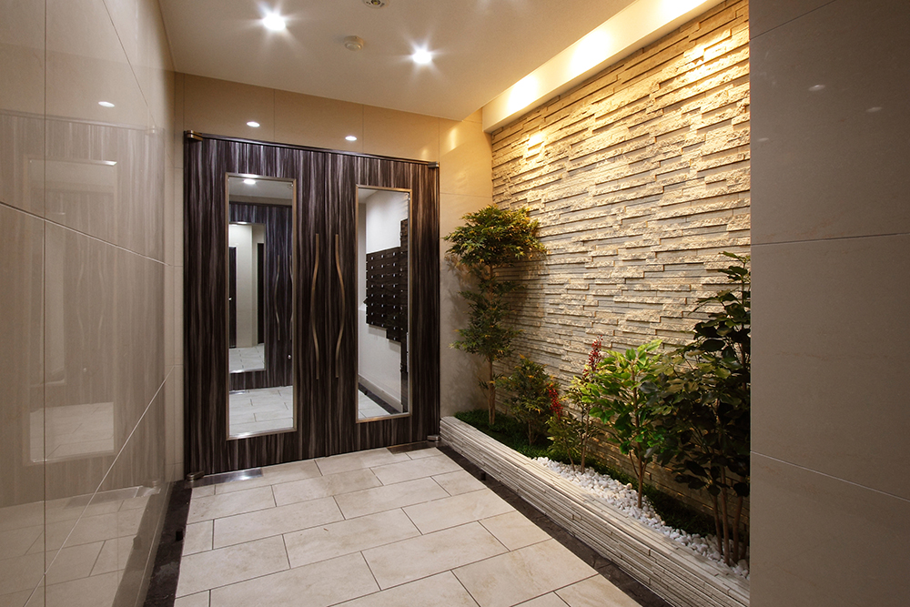 高級感あるマンションのエントランスホール。入居者の満足度も高く大変好評です。格調高い仕上げによりマンションの資産価値も高めます。